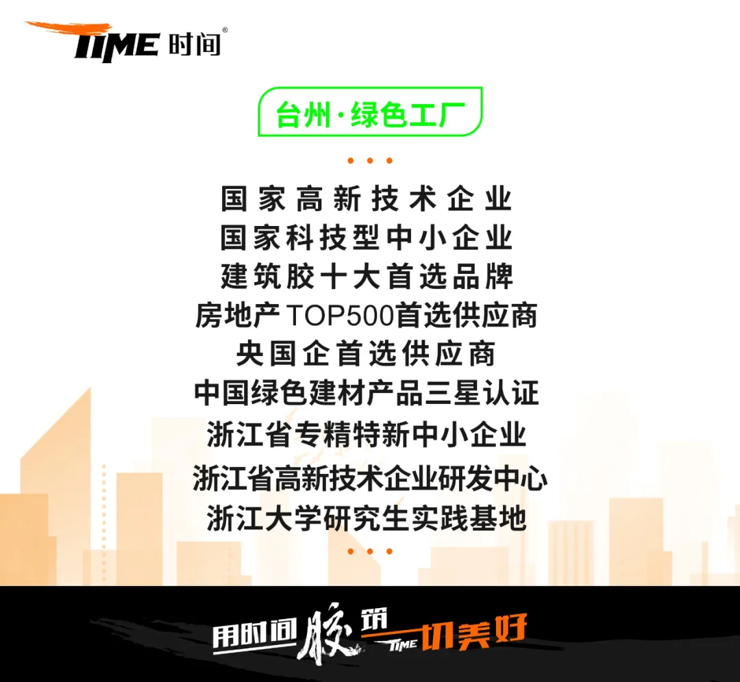 公司以绿色发展为核心,多项产品获得三星绿色建材认证,工厂获得绿色工厂认证。作为浙江省建筑装饰行业协会“理事单位”的时间新料,也是:中国门窗幕墙行业建筑胶十大首选品牌,房地产TOP500首选供应商,及2024央国企前五首选供应商。